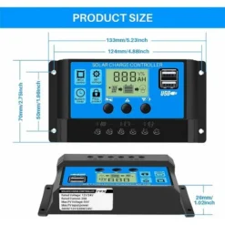 30A 12/24V LCD Régulateur Solaire Batterie Régulateur Contrôleur Double USB