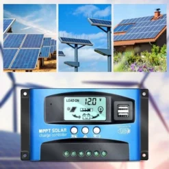 Contrôleur De Charge De Panneau Solaire 12V/24V 30A Affichage LCD, Double Ports USB 1377740cm Bleu
