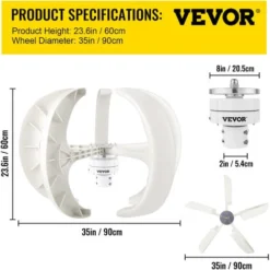 VEVOR Générateur Turbine éolienne Lanterne énergie 100W 12V 5 Pales Axe Vertical