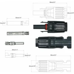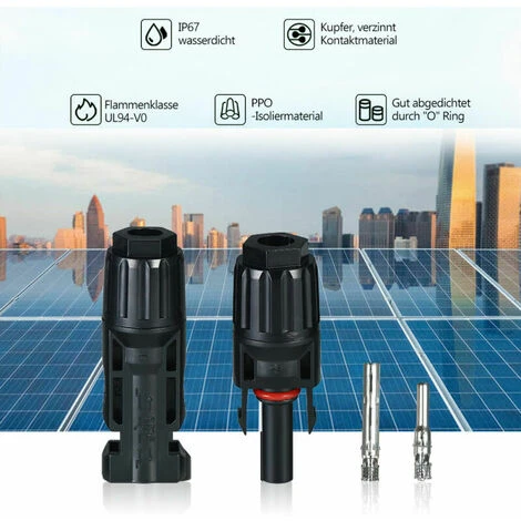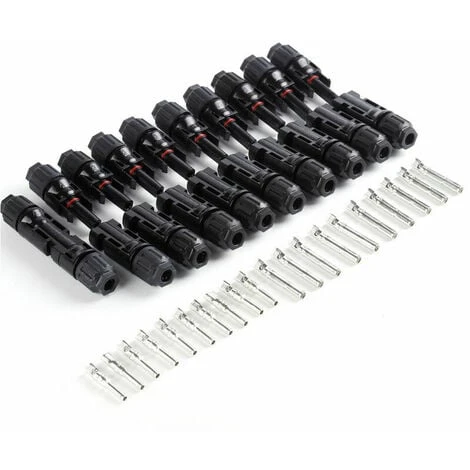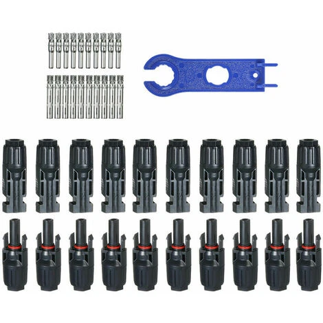 Cela vous permet de fabriquer des câbles de votre propre longueur. Ceux-ci fonctionnent bien avec d’autres connecteurs d’accouplement MC-4. 10 paires de prises solaires et une clé sont incluses.