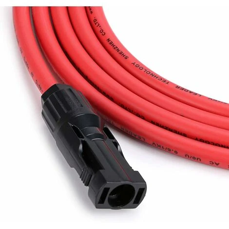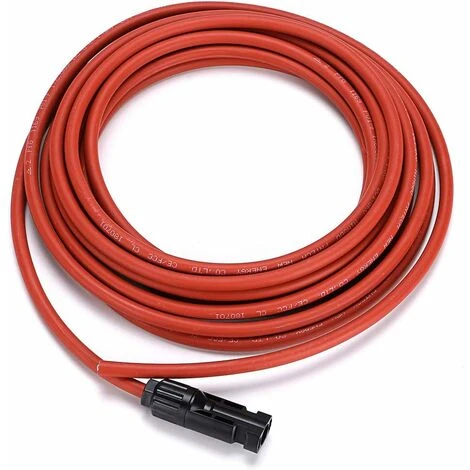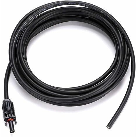 Y compris : 2 câbles d’extension photovoltaïques, chacun — 6 mètres (longueur), 6,0 mm² (diamètre), 14 AWG (diamètre du conducteur)