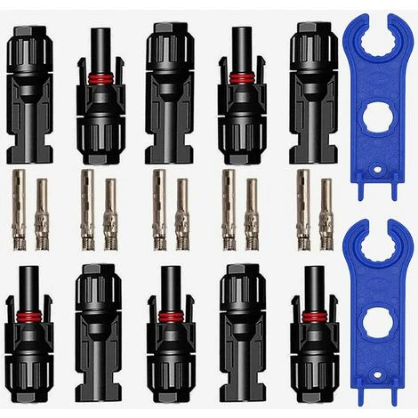 5 paires de connecteurs de panneau solaire mâle et femelle + 5 paires de broches de connecteur solaire (mâle et femelle) .et jeu de 2 clés de connecteur.