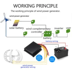 L’éolienne cessera automatiquement de fonctionner à une vitesse du vent de 14 M/S ou lorsque la batterie est complètement chargée, afin de protéger le ventilateur