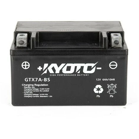 Si une puissance élevée est la priorité lors du choix d’une batterie de rechange, envisagez les batteries haute performance sans entretien de KYOTO. KYOTO offre plus de puissance, moins d’entretien et une durée de vie plus longue. Les batteries haute performance sans entretien de KYOTO sont la meilleure solution pour les motos, les véhicules utilitaires, les scooters. Toutes les caractéristiques d’une batterie standard sans entretien, PLUS une puissance améliorée et jusqu’à 30 % d’ampères de démarrage en plus grâce à une conception de grille radiale et des plaques supplémentaires. Cette batterie sans entretien est identique à l’origine, livrée « prête à l’emploi » et chargée en usine (SLA) Aucune manipulation dangereuse n’est à effectuer. De même technologie que les batteries AGM* La batterie pourra être placée en position inclinée *’Absorbed Glass Material’ signifie que l’électrolyse se trouvant dans la batterie étanche, est absorbé par capillarité et retenu à l’intérieur du « buvards » en fibre de verre microperforé. Elle offre : Excellent rapport Qualité/Prix. Puissance et performance Fiabilité et robustesse (résiste aux vibrations) ATTENTION : Si la batterie n’est pas utilisée, il faudra obligatoirement la mettre en charge une fois par mois, pour ne pas l’endommager. Si cette première charge n’est pas effectuée correctement, la batterie pourra : – perdre 20% de sa capacité nominale – perdre 30% de sa durée de vie totale Une batterie qui reste complètement déchargée pendant plus d’un mois se détériorera de façon irréversible.