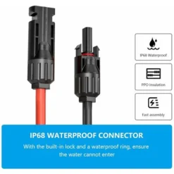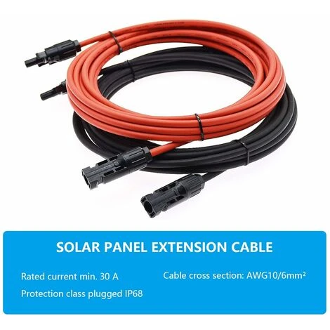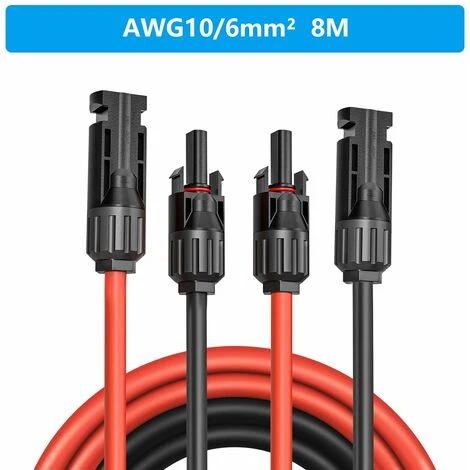 [Cable d’extension pour panneau solaire] cable solaire panneau solaire (8 m rouge + 8 m noir) avec fiche MC4 peut être utilisé directement, pas besoin d’installer des cables et des connecteurs vous-même, pas besoin d’acheter des connecteurs supplémentaires.[Utilisation ]Deux Cable d’Extension Solaire avec fiche MC4, une extrémité est connectée au panneau solaire, l’autre extrémité est connectée au régulateur de charge solaire, ne coupez pas la pince de sertissage du cable ou de la prise. Si vous n’êtes pas satisfait de nos produits, vous pouvez soutenir un remboursement inconditionnel.