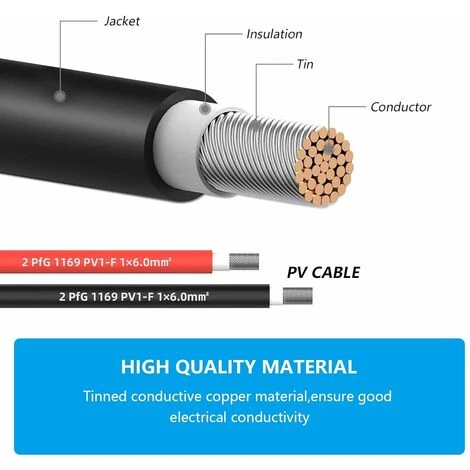 [IP68 étanche] Polyoléfine, matériau d’isolation ignifuge, partie conductrice, matériau en cuivre étamé, étanche IP68, haute étanchéité, anti-poussière, résistant aux intempéries, conçu pour une chaleur extrême et le froid, spécialement conçu pour les systèmes photovoltaïques, conçu pour les conditions météorologiques extrêmes, il peut être enterré directement dans le sol.