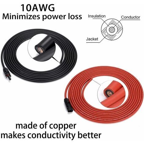 Câble d’extension pour panneau solaire avec connecteurs femelle et mâle Kit d’adaptateur (3m Rouge + 3m Noir) est un produit de haute qualité spécialement conçu pour fournir une installation professionnelle de panneaux solaires pour les sysseau et systèmes