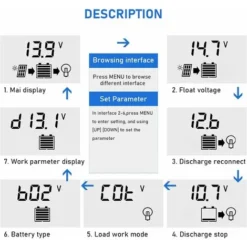 【Contrôleur solaire】 Puce de contrôle principale de qualité industrielle, précision d’échantillonnage AD à 16 niveaux, température en temps réel, courant de charge, courant de décharge et affichage précis de diverses données. Fonctions de décharge, de