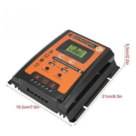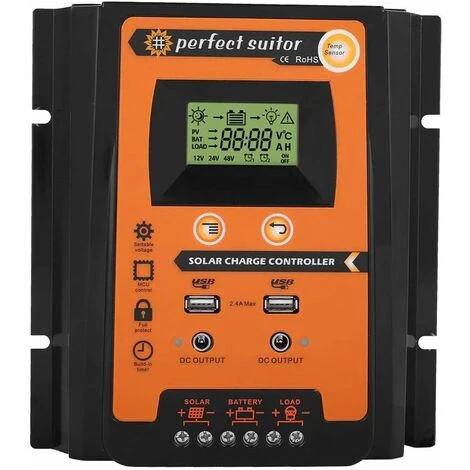[Fonction] Le mode de contrôle de charge peut être sélectionné et la fonction de minuterie peut être réinitialisée pour l’éclairage public la nuit. Contrôle de la capacité de décharge. , enregistre la minuterie d’erreur pendant le fonctionnement et enregistreles heures de batterie complètement chargée. [Caractéristiques] Identification automatique de la tension du système, identification automatique de 12/24 V, écran LCD humanisé, fonctionnement à double bouton de l’interface homme-machine, indicateurs techniques de modélisation complets et processus