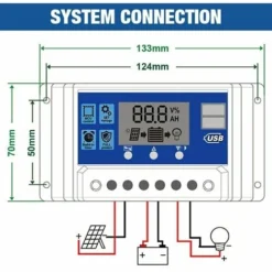 1. Connectez la batterie au régulateur de charge – positif et négatif.