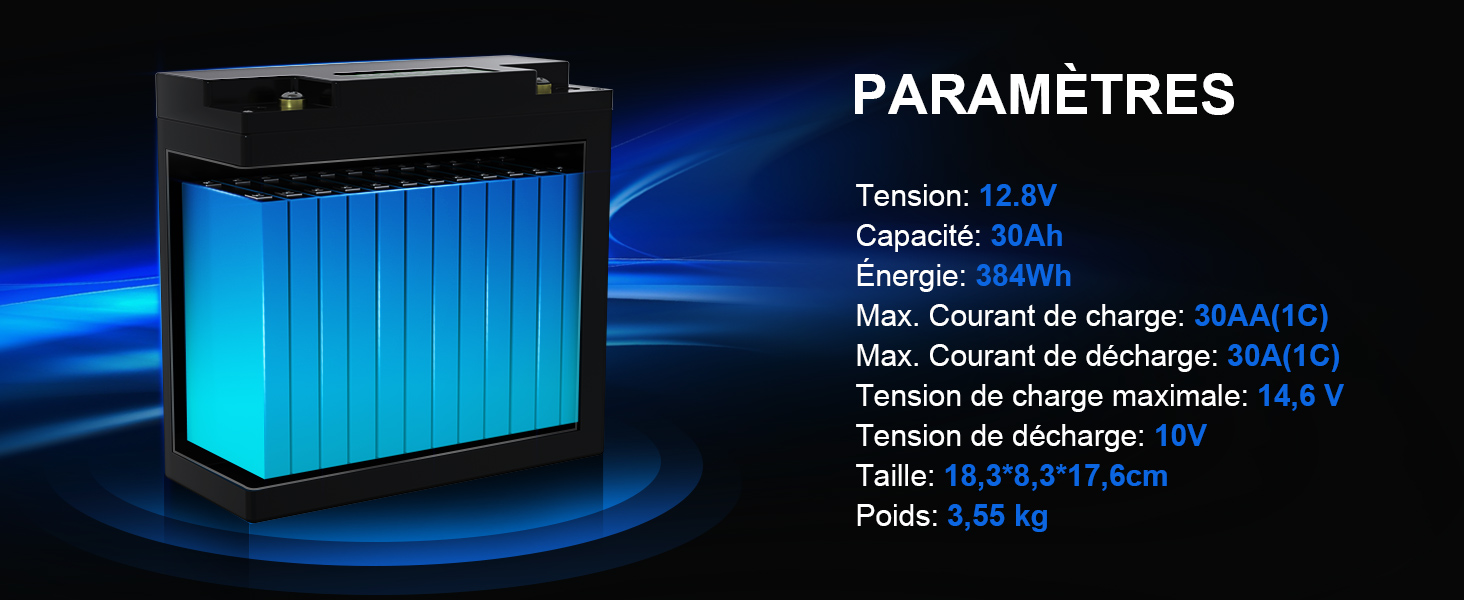 - Ampère heure30.0 Ah