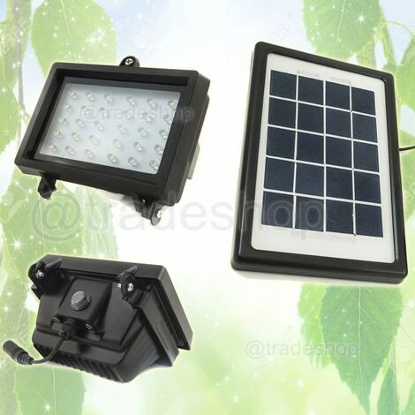 Éclairage LED avec Ă©nergie solaire avec panneau solaire et batterie rechargeable intĂ©grĂ©e Ă la lumière. 30 projecteurs LED avec une nutrition du soleil idĂ©ale pour l’Ă©clairage sans consommation d’Ă©nergie! Grâce au panneau solaire, l’objet accumule la charge pendant la journĂ©e, puis s’allume automatiquement la nuit. Le panneau solaire avec le câble d’extension vous permet de placer les projecteurs Ă©loignĂ©s du panneau solaire pour obtenir une flexibilitĂ© maximale de l’assemblage. Le panneau solaire doit nĂ©cessairement ĂŞtre positionnĂ© au soleil. ÉquipĂ© d’une batterie de lithium intĂ©grĂ©e et de l’interrupteur hors dĂ©sactivation pour dĂ©sactiver les projecteurs en cas de non-utilisation. CaractĂ©ristiques techniques: DegrĂ©s d’Ă©tanchĂ©itĂ©: IP65 luminositĂ©: 180 LED LED NumĂ©ro: 30 Power: 3W Batterie de lithium intĂ©grĂ©e Alimentation: 3W Tension maximale: 6V Amperaggio Maximum: 0,5A Courant de court-circuit: 0,55A Tension de circuit ouvert: 8,11 V 4Ah Batterie au lithium Batterie Lithium Longueur du câble: environ 3 mètres ne nĂ©cessite pas d’attaque sur les projecteurs de fixation du courant Ă©lectrique avec le support Le package contient: Nr. 1 Spotlight Nr. 1 Panneau solaire