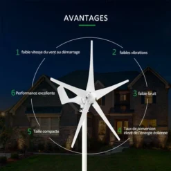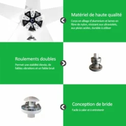 【Énergie claire】 Cette éolienne présente les avantages d’une faible vitesse de démarrage du vent et d’un taux de conversion élevé de l’énergie éolienne. Les doubles roulements permettent une stabilité élevée, de faibles vibrations et un faible bruit.