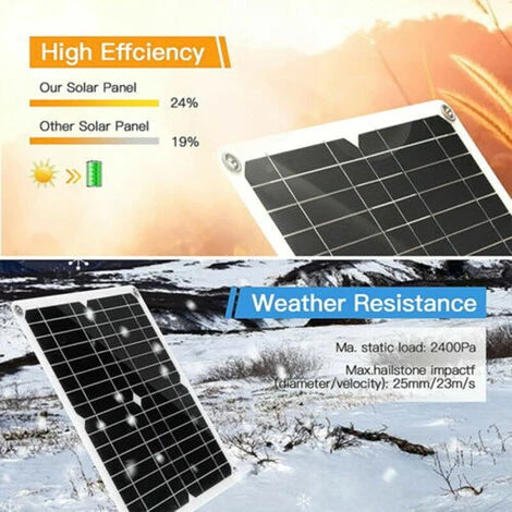 Le kit de panneau solaire portable peut vous aider à recharger vos téléphones, tablettes, appareils photo, lampes de camping, MP3, voiture, camping-car, bateau marin, etc. à l’extérieur ou en déplacement.