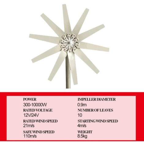 - -Vitesse du vent de démarrage: 2 m/s