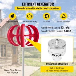 Assemblage sans Effort : Ce kit d’éolienne verticale est livré avec un contrôleur interne et un cerceau installé, plus pratique que la bride et le contrôleur externe. Le type de cerceau et la conception du contrôleur intégré vous éviteront les erreurs d’installation, ce qui vous fera gagner du temps et de l’argent.